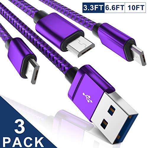 Micro USB Charger Cable 3-Pack (3.3/6.6/10FT),Nylon Braided Charging P…