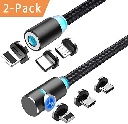 Micro USB and Sort C 3in1, 90 Level Proper Attitude,Nylon Braided Wire,360 Magnetic Charging Cable with Led Gentle