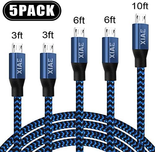 Micro USB Cable,XIAE 5Pack (3/3/6/6/10FT) Nylon Braided Speedy Charging …
