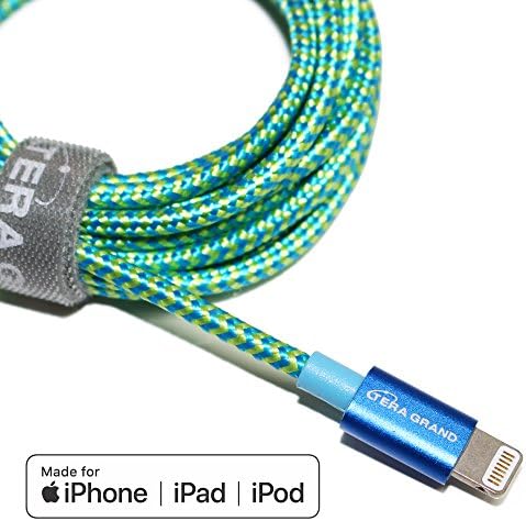 Tera Grand [Apple MFi Certified] Lightning to USB Cable – Blue & Inexperienced 7 Toes